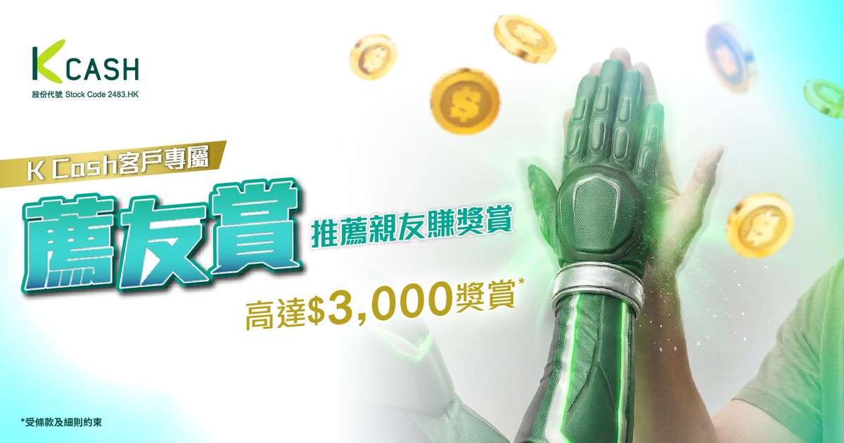K Cash客戶(推薦人)只需於推廣期內推薦親友(受薦人)成功申請K Cash業主貸款並提取貸款金額達 HK$300,000 或以上,符合指定條件,推薦人可獲得:HK$3,000 推薦獎賞!